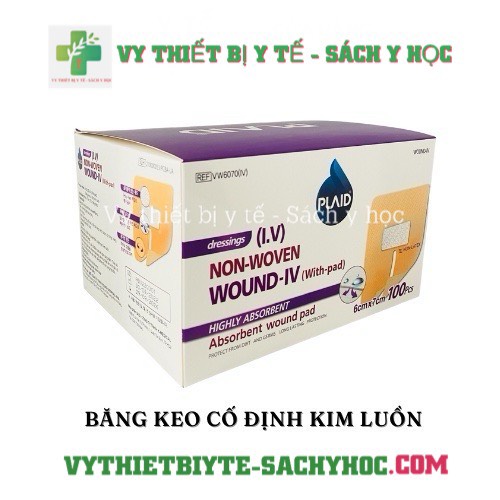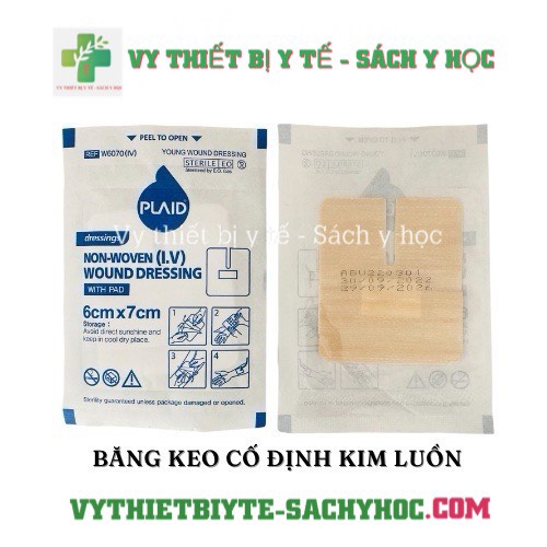 Băng keo cố định kim luồn Wound-IV (with- pad) 6cm x 7cm, băng kim luồn PLAID