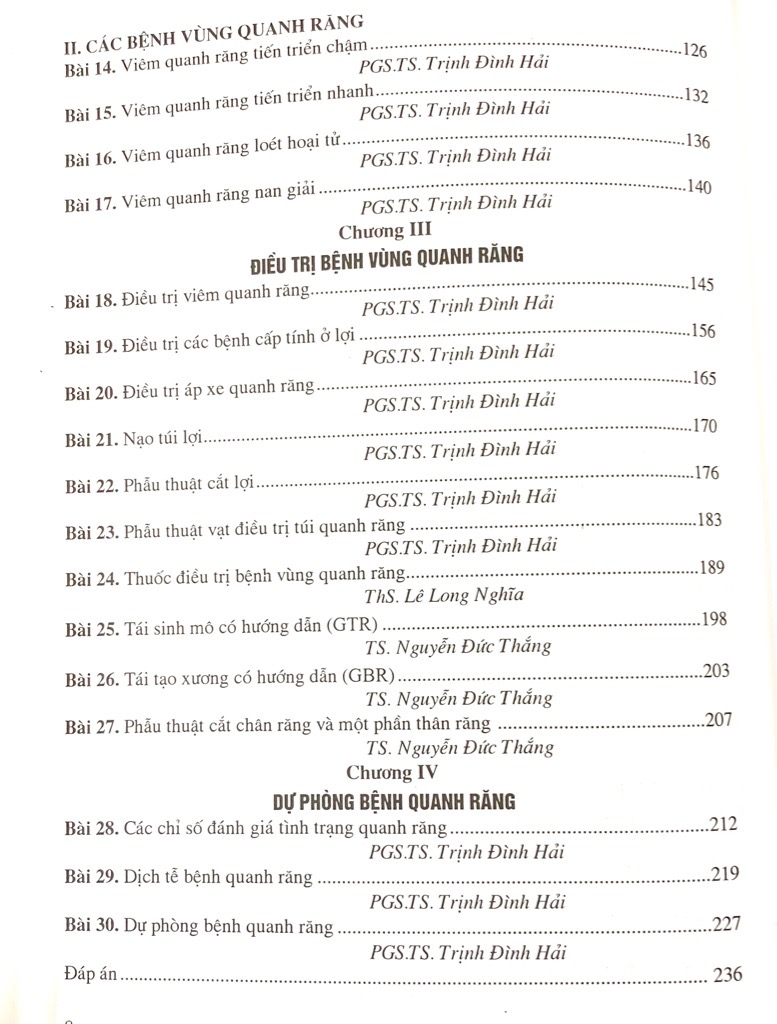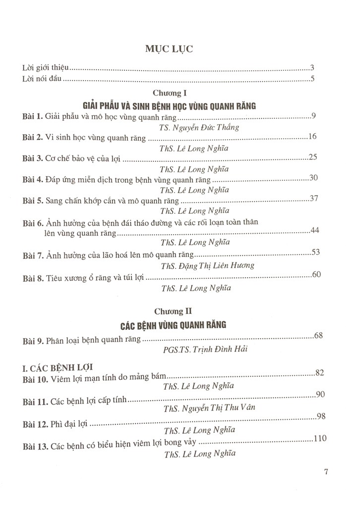 "Sự ra đời của quyển sách “BỆNH HỌC QUANH RĂNG” là kết quả làm việc miệt mài, tận tụy, đầy trách nhiệm của tập thể giảng viên Viện Đào tạo Răng Hàm Mặt kể cả các giảng viên kiêm nhiệm. Các tác giả biên soạn theo phương châm kiến thức cơ bản, hệ thống, nội dung chính xác, khoa học, cập nhật các tiến bộ khoa học, kỹ thuật hiện đại và thực tiễn Việt Nam.