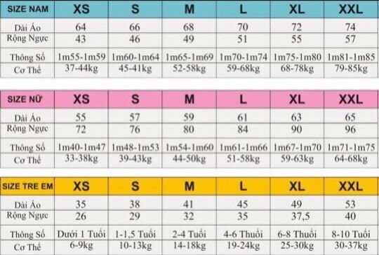 Bạn hãy để lại ghi chú chọn sai cỡ: Chọn Sai / Giới tính
