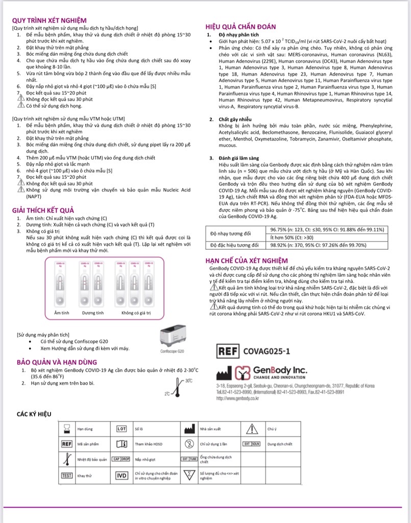 Là sản phẩm kit test nhanh đến từ nhà sản xuất GenBody, Inc (Hoa Kỳ) kit test nhanh GenBody COVID-19 Ag hiện là 1 trong 6 sản phẩm test nhanh được đưa vào danh sách thiết bị/sản phẩm chẩn đoán in vitro...