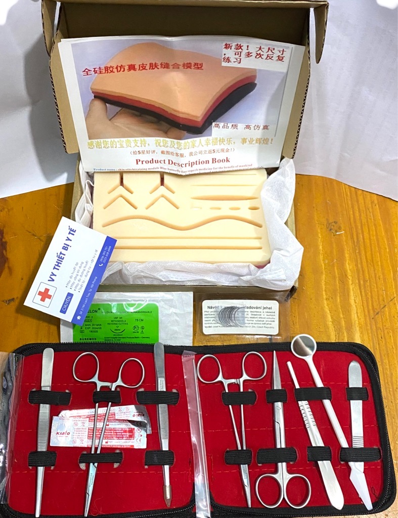 4- Bộ tiểu phẫu 13 món kèm bao da + 1chỉ liền kim + 10 kim khâu vỉ: 530.000 vnđ