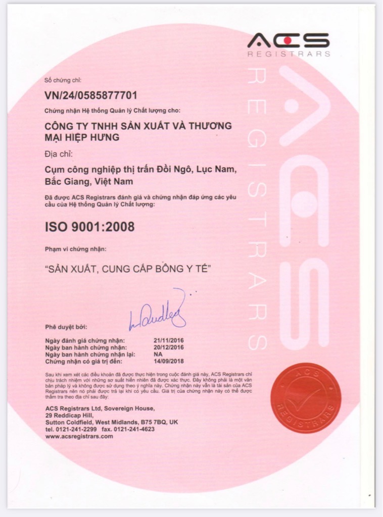 Chất lượng bông đã được kiểm tra và xét duyệt theo tiêu chuẩn của VIỆN KIỂM NGHIỆM THUỐC TRUNG ƯƠNG - BỘ Y TẾ.