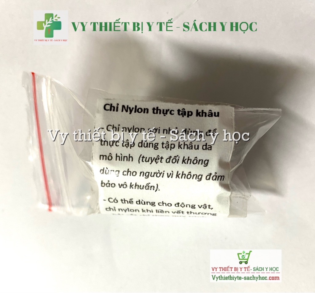 - Chỉ nylon sợi nhỏ dùng để thực tập dùng tập khâu da mô hình (tuyệt đối không dùng cho người vì không đảm bảo vô khuẩn).