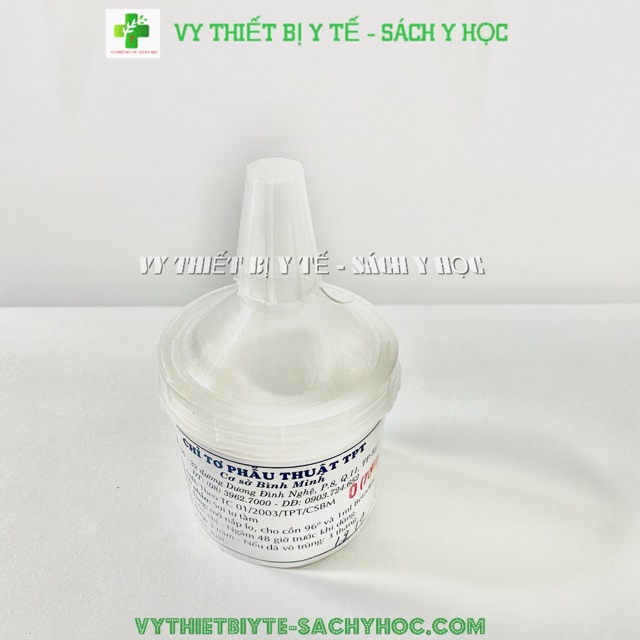 Cách dùng: mở nắp lọ, cho cồn 96 độ và 1 ml Bétadine ngập cuộn chỉ .