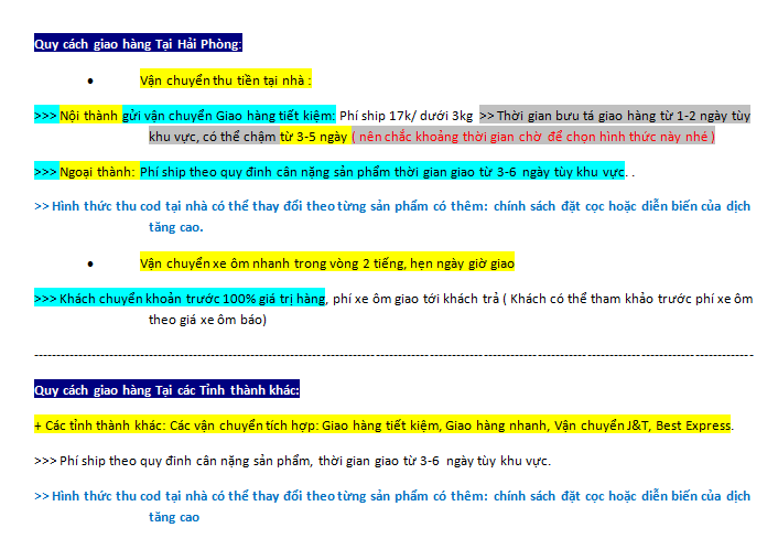 >>> Phí ship theo quy đinh cân nặng sản phẩm, thời gian giao từ 3-6 ngày tùy khu vực.
