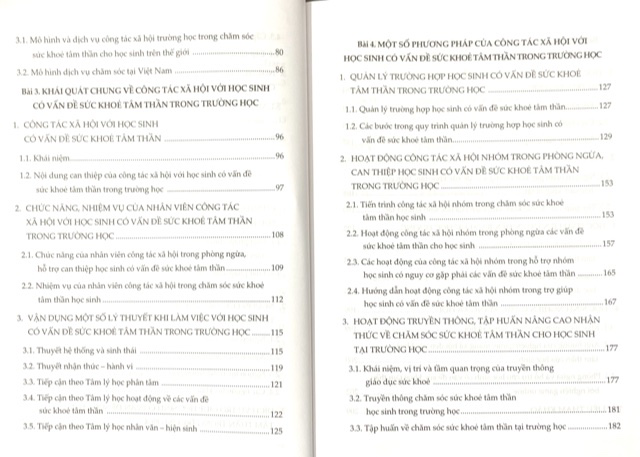 Cung cấp những kiến thức cơ bản về học sinh có vấn đề sức khoẻ tâm thần học đường; các chính sách, nguồn lực và dịch vụ trợ giúp học sinh có vấn đề sức khoẻ tâm thần. Trình bày khái quát về công tác xã hội, một số phương pháp của công tác xã hội với học sinh có vấn đề sức khoẻ tâm thần trong trường học; hướng dẫn các biện pháp chăm sóc sức khoẻ tâm thần cho một số nhóm đối tượng học sinh trong trường học
