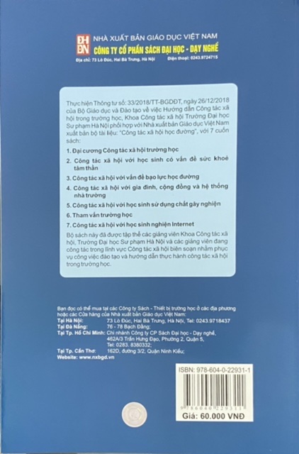 Cuốn sách này được dùng làm tài liệu phục vụ đào tạo sinh viên ngành Công tác xã hội của Trường Đại học Sư phạm Hà Nội, ngoài ra nó còn là tài liệu tham khảo hữu ích cho các cán bộ quản lý, giáo viên, nhân viên nhà trường trong việc phòng ngừa, can thiệp, hỗ trợ cho học sinh giải quyết các vấn đề nảy sinh trong trường học.