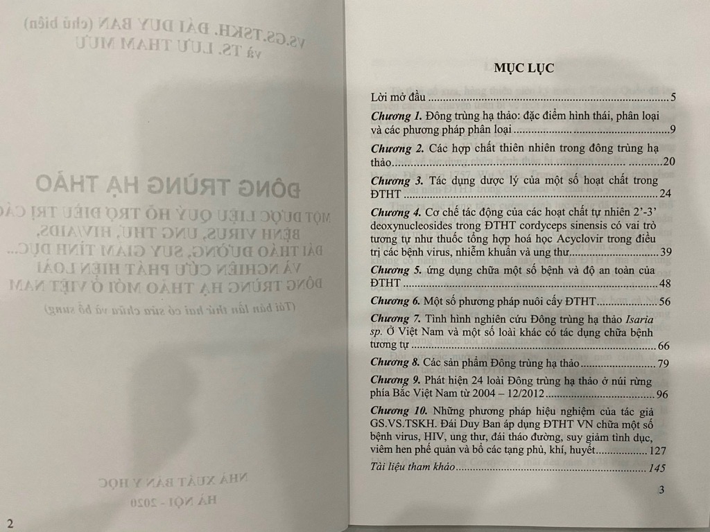 Cuốn sách là tài liệu quý hỗ trợ điều trị các bệnh virus, ung thư, HIV/AIDS, đái tháo đường, suy giảm tình dục... và nghiên cứu phát hiện loài đông trùng hạ thảo mới ở Việt Nam” gồm 10 chương trong đó giới thiệu khái quát về ĐTHT, thành phần hoá học, tác dụng dược lý, sử dụng chữa bệnh, cơ chế tác dụng, phương pháp nuôi cấy, một số chế phẩm hiện có bán ở Việt Nam; một số hình ảnh thu được và một số phương pháp hiệu nghiệm của GS.VS.TSKH. Đái Duy Ban áp dụng ĐTHT chữa một số bệnh.