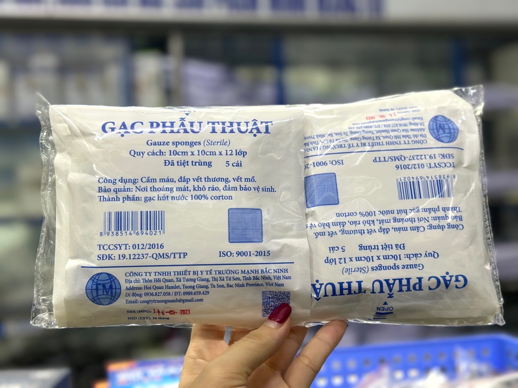 Gạc phẫu thuật tiệt trùng 10x10x12 lớp Trường Mạnh