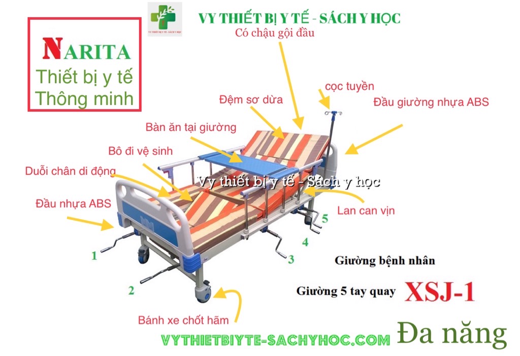 Đặc điểm Giường bệnh nhân đa năng 5 tay quay NARITA XSJ-1