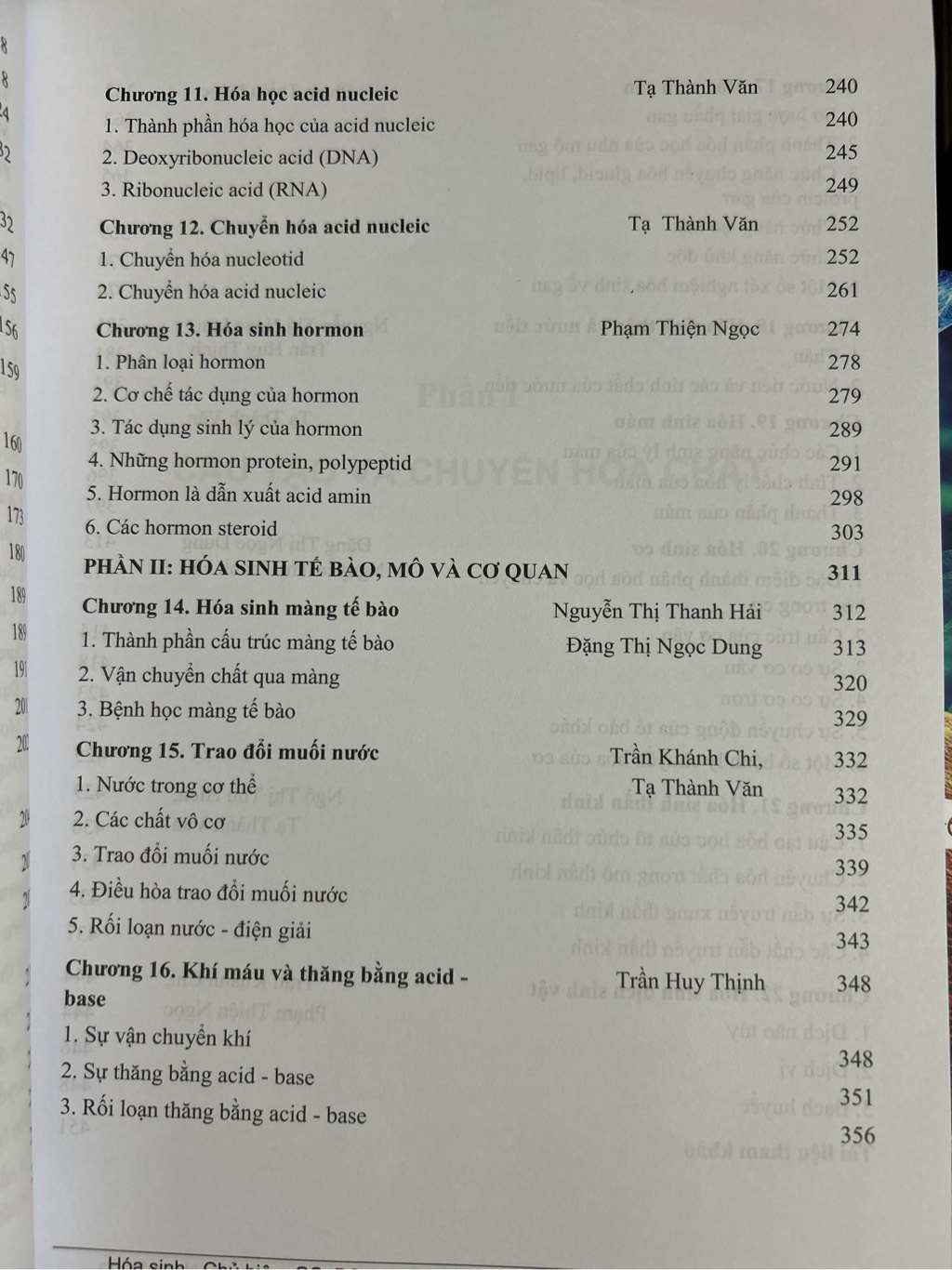 Phần II. Hóa sinh tế bào, mô và cơ quan Phần Cấu tạo và chuyển hóa chất trình bày về cấu tạo, tính chất và vai trò của các chất sinh học cơ bản trong cơ thể sống, các quá trình chuyển hóa và điều hòa chuyển hóa chất trong cơ thể sống.