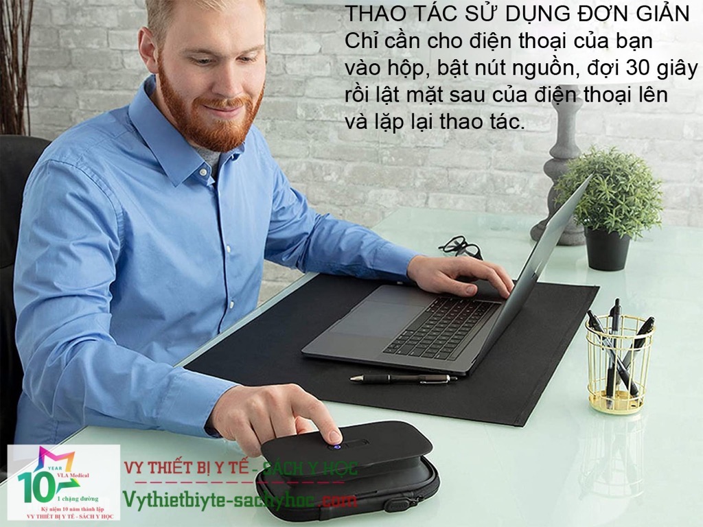 Hộp khử khuẩn SAN-PH100 có thể sử dụng 70 lần sau mỗi lần sạc, bao phủ hoàn toàn điện thoại của bạn và cho khả năng làm sạch tối ưu chỉ trong 30 giây ở mỗi mặt. Vị trí chiếu sáng được thiết kế đặc biệt, đảm bảo vùng phủ tối đa và hiệu quả nhất.