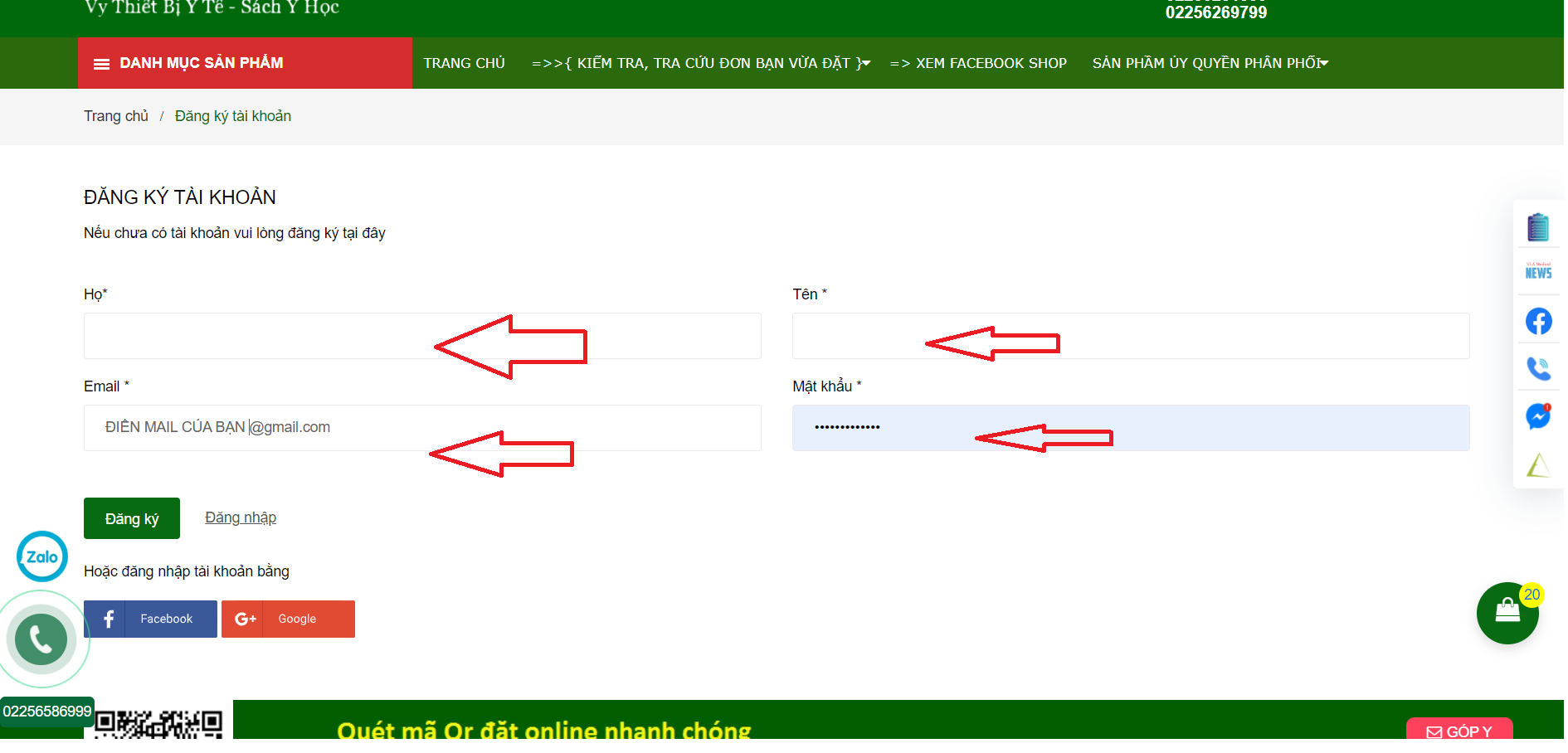 Nếu bạn muốn mua hàng mà không cần tài khoản vui lòng nhấp chuột vào mục đặt hàng không cần tài khoản