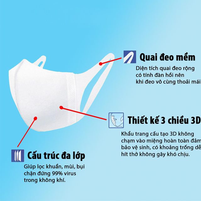 >>> Xem thêm : Khẩu trang 3D Người lớn Trường Mạnh Japan Technolog (50 chiếc 1 hộp)