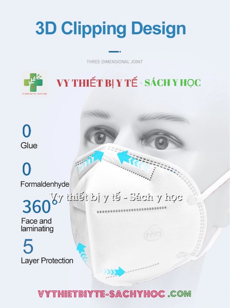 Khẩu trang NIVA N95 được tạo bởi 2 lớp vải không dệt cao cấp không thấm nước, bụi, dầu, giọt bắn, một lớp vải bông không dệt và 1 lớp màng lọc có tác dụng ngăn vi khuẩn, khói, bụi, dầu, giọt bắn xâm nhập, phòng chống các dịch bệnh nguy hiểm lây qua đường hô hấp. Sử dụng hiệu quả cho các y bác sĩ, trong môi trường tiếp xúc với các bệnh nhân và phòng mổ, môi trường công nghiệp độc hại, nơi công cộng để ngăn ngừa dịch bệnh và giọt bắn có nguy cơ lây nhiễm mầm bệnh.