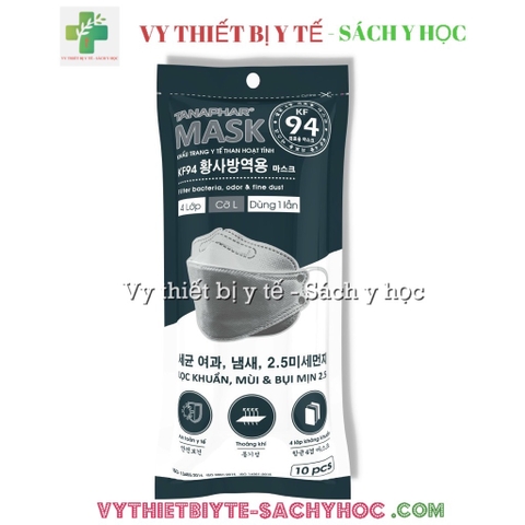 Khẩu trang y tế Than Hoạt tính KF94 (cá - Túi 10 cái) - Thương hiệu Tanaphar