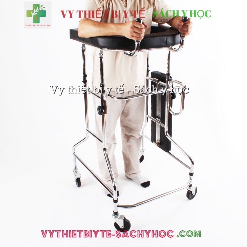 Khung tập đi cho người bị liệt KD03) chất liệu bạt hoặc da ( loại 4 bánh)