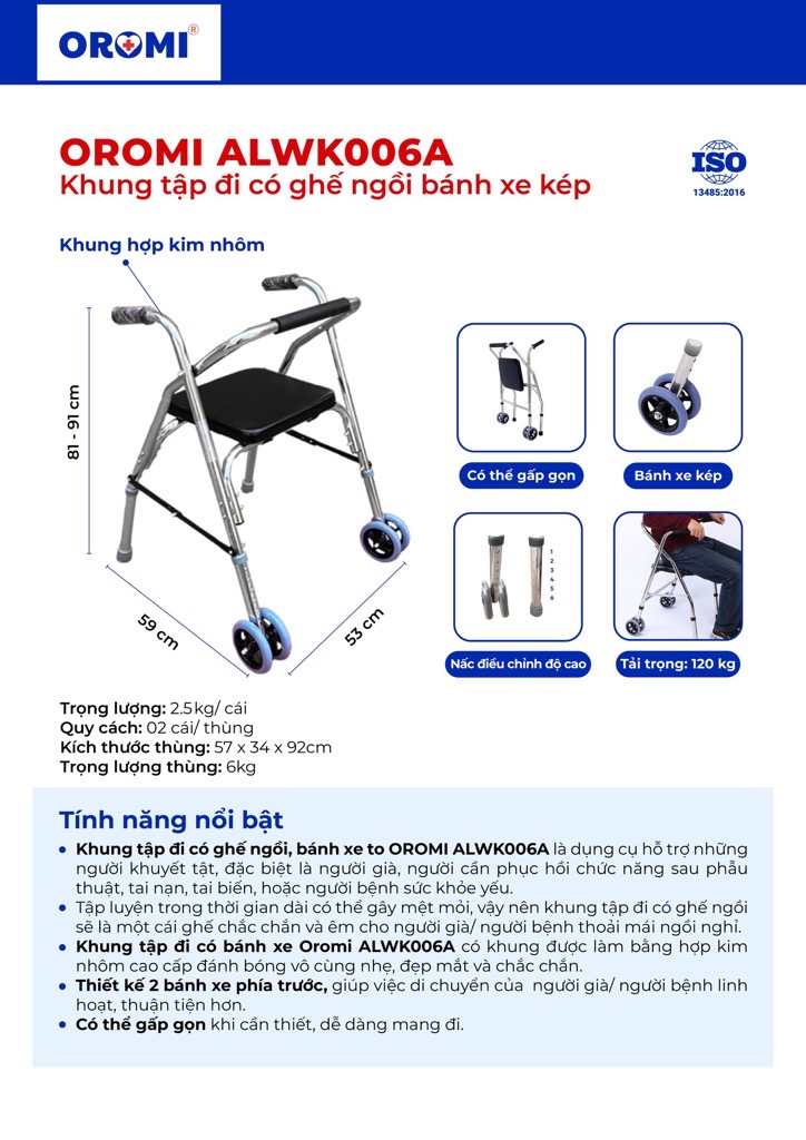 Khung tập đi có ghế ngồi Oromi ALWK006A