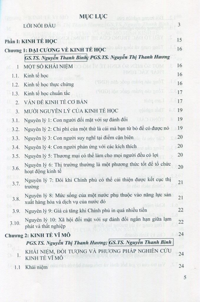 Phần I: Kinh tế học gồm 3 chương (Đại cương về kinh tế học; Kinh tế vĩ mô; Kinh tế vi mô).
