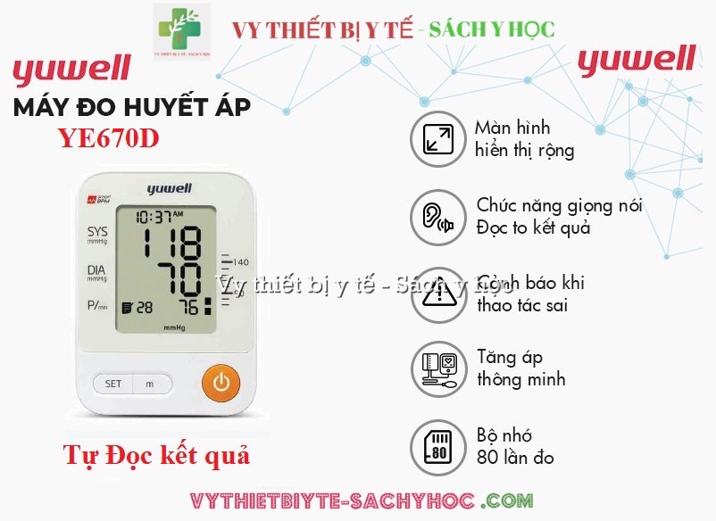 Máy Đo Huyết Áp Bắp Tay Yuwell YE670D là sản phẩm thuộc thương hiệu Yuwell giúp bạn nhận biết và theo dõi tình trạng huyết áp tâm trương, huyết áp tâm thu và...