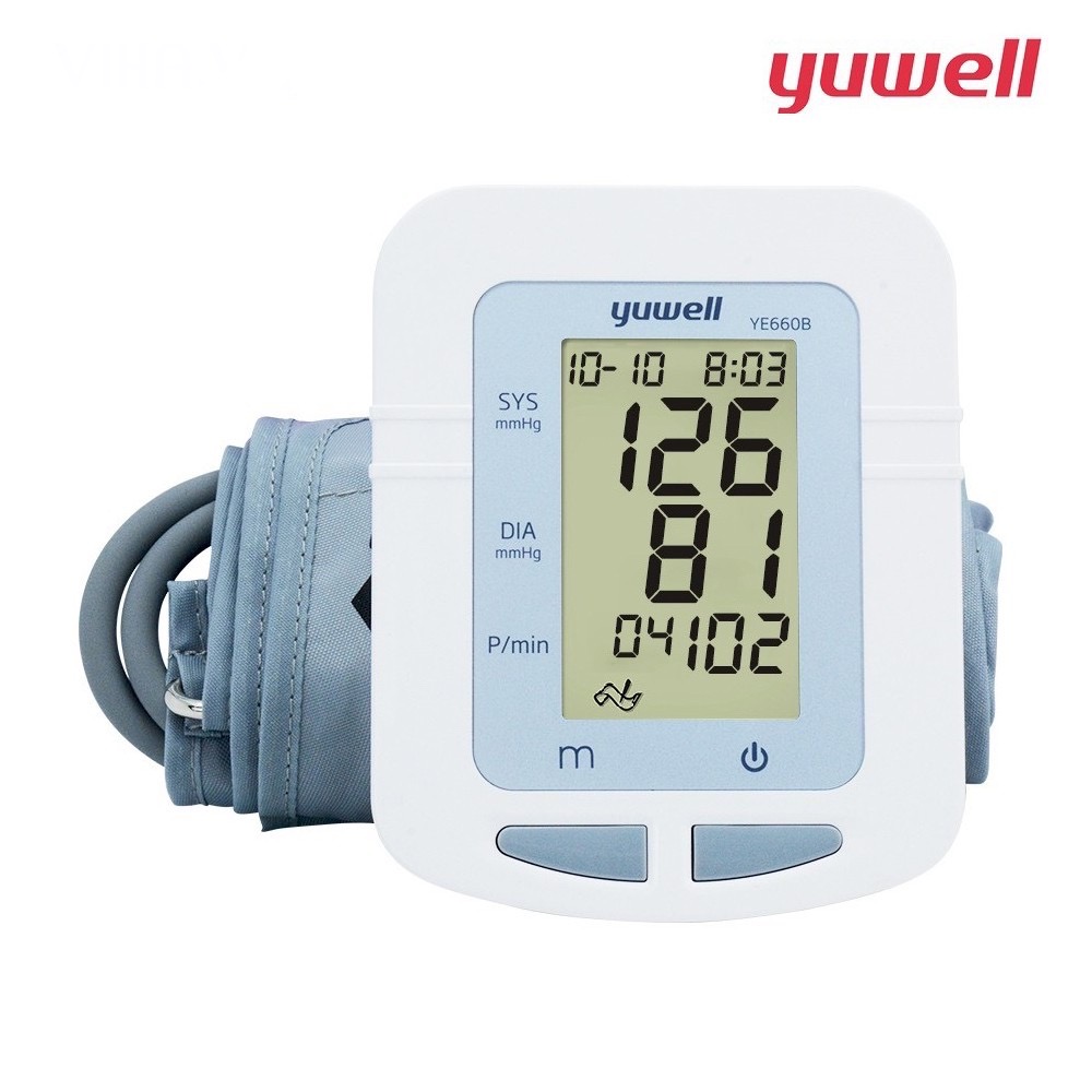 Máy đo huyết áp Yuwell YE660B cho kết quả đo huyết áp chính xác Máy đo huyết áp bắp tay là sản phẩm chuyên dùng để đo huyết áp tại nhà, giúp các bệnh nhân bị cao huyết áp có thể tiện theo dõi bệnh mỗi ngày để duy trì sức khỏe tốt nhất. Màn hình LCD lớn Linh kiện của máy đo huyết áp được nhập khẩu từ Nhật Bản, lắp ráp tại Trung Quốc và đạt tiêu chuẩn FDA và CE nên đảm bảo độ chính xác khi đo huyết áp và nhịp tim.