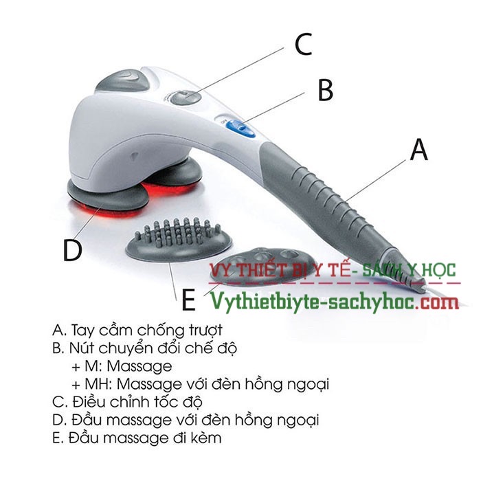 Hình ảnh Máy mát xa cầm tay có hồng ngoại Beurer MG80 và đầu massage đi kèm