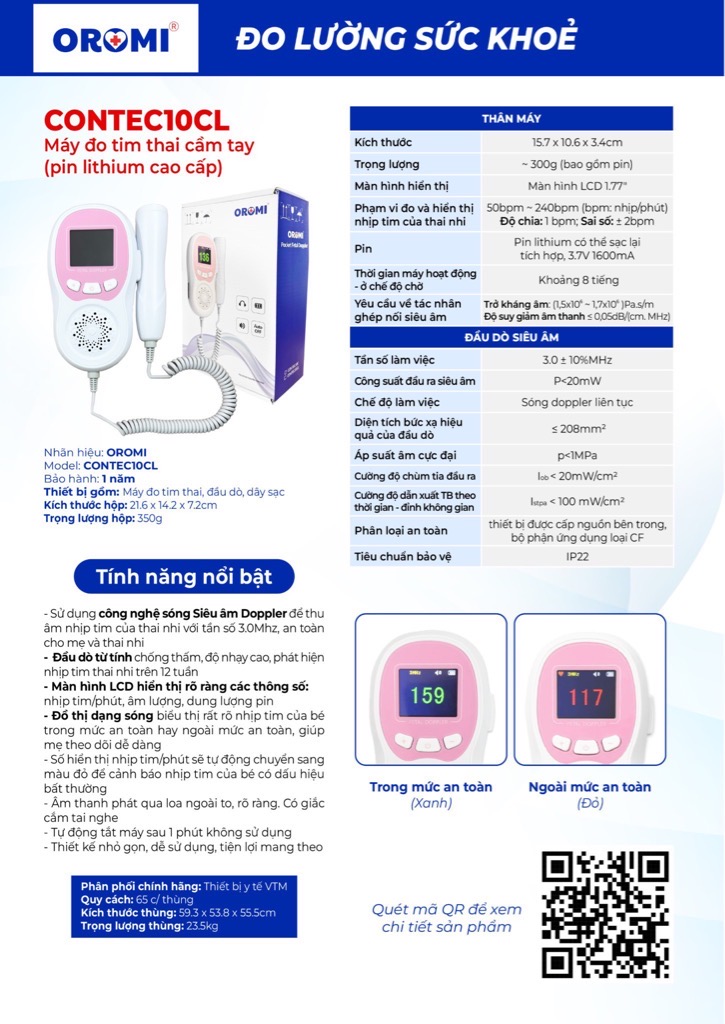 ĐẶC ĐIỂM Máy nghe tim thai cầm tay CONTEC10CL - OROMI