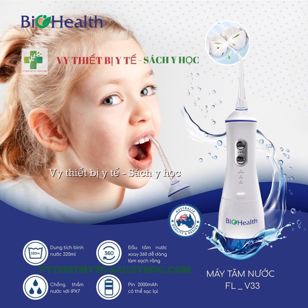 Máy tăm nước Biohealth FL-V33, thương hiệu Úc (pin sạc, 3 tốc độ)