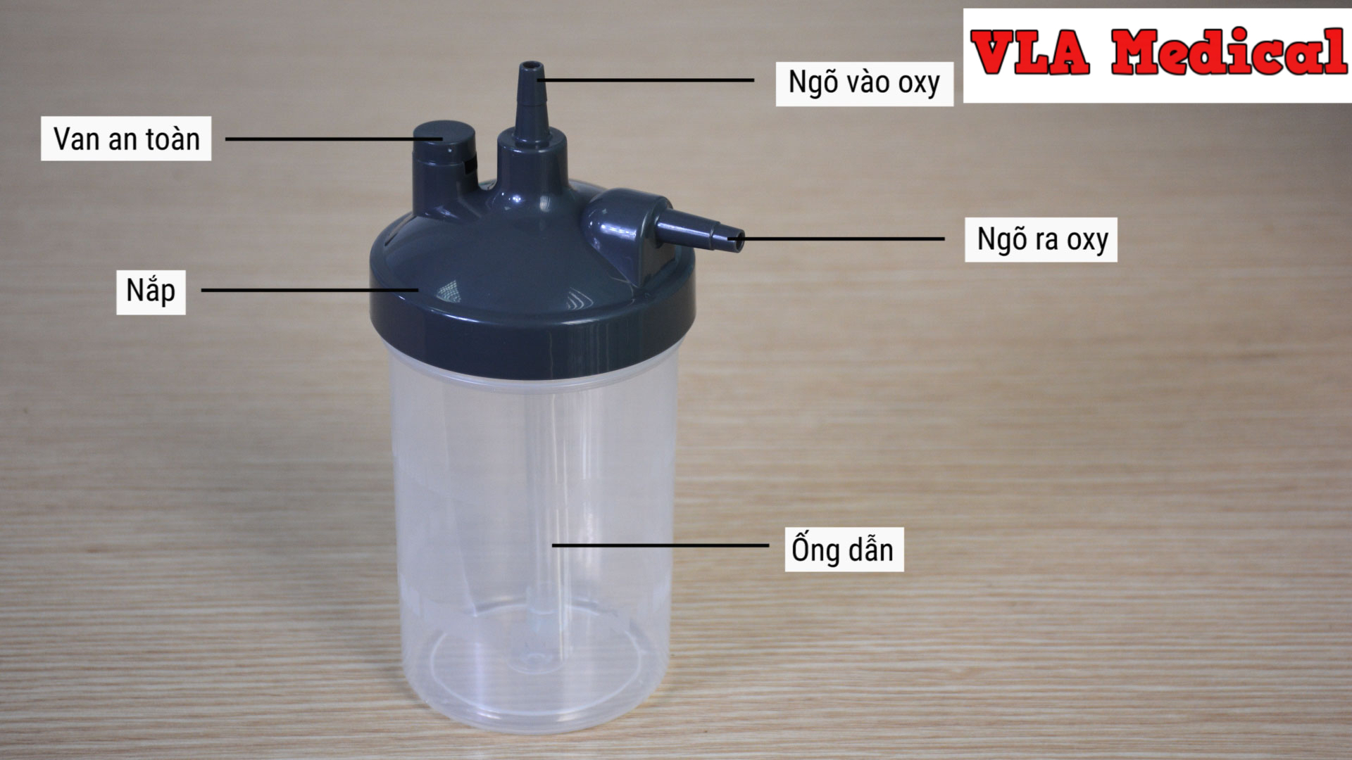 - Khi đã điều chỉnh lưu lượng khí oxy, chai của thiết bị giữ ẩm sẽ có bọt khí bám xung quanh. Khi đó, oxy sẽ đi ra từ ngõ ra oxy.