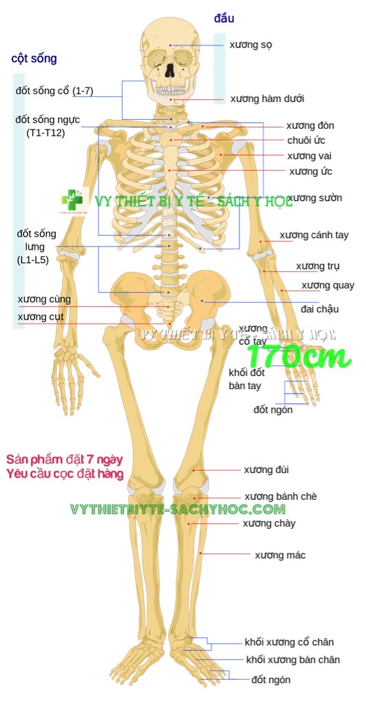 - Bộ xương người làm bằng vật liệu nhựa không vỡ, mô hình chuẩn.
