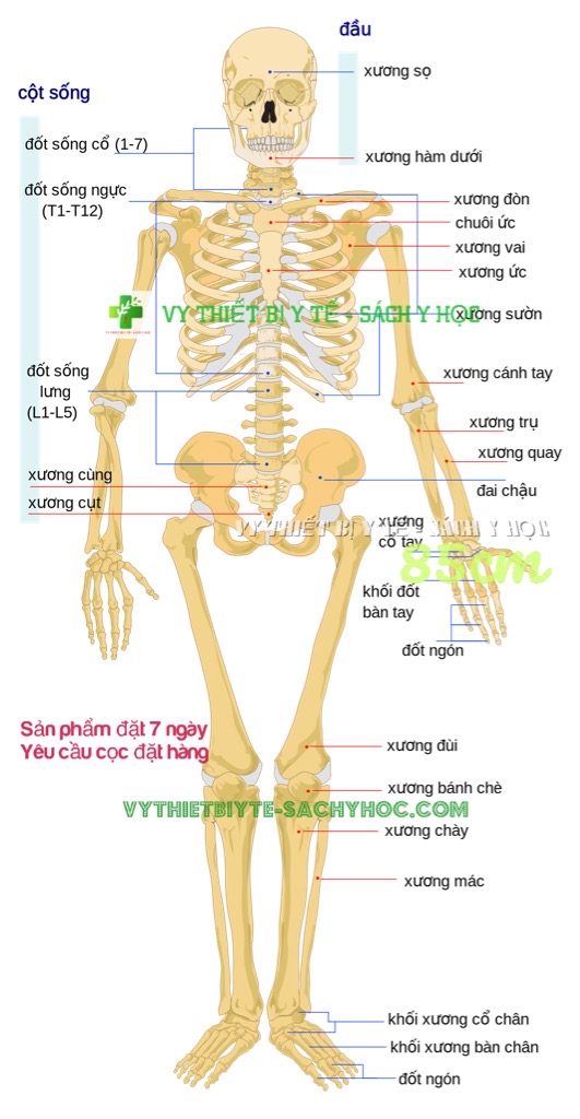 - Bộ xương người làm bằng vật liệu nhựa không vỡ, mô hình chuẩn.