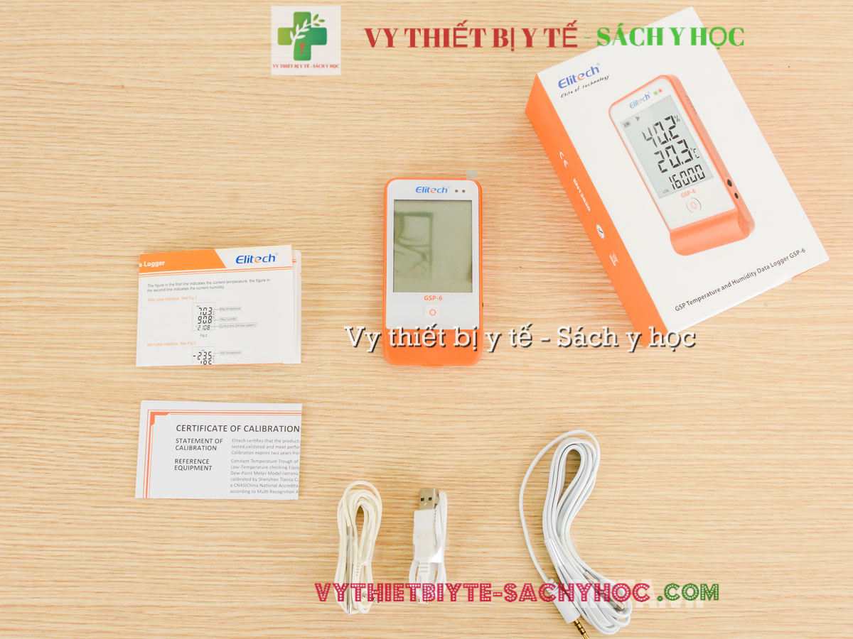 Nhiệt ẩm kế tự ghi dữ liệu Elitech GSP-6 đi kèm các phụ kiện