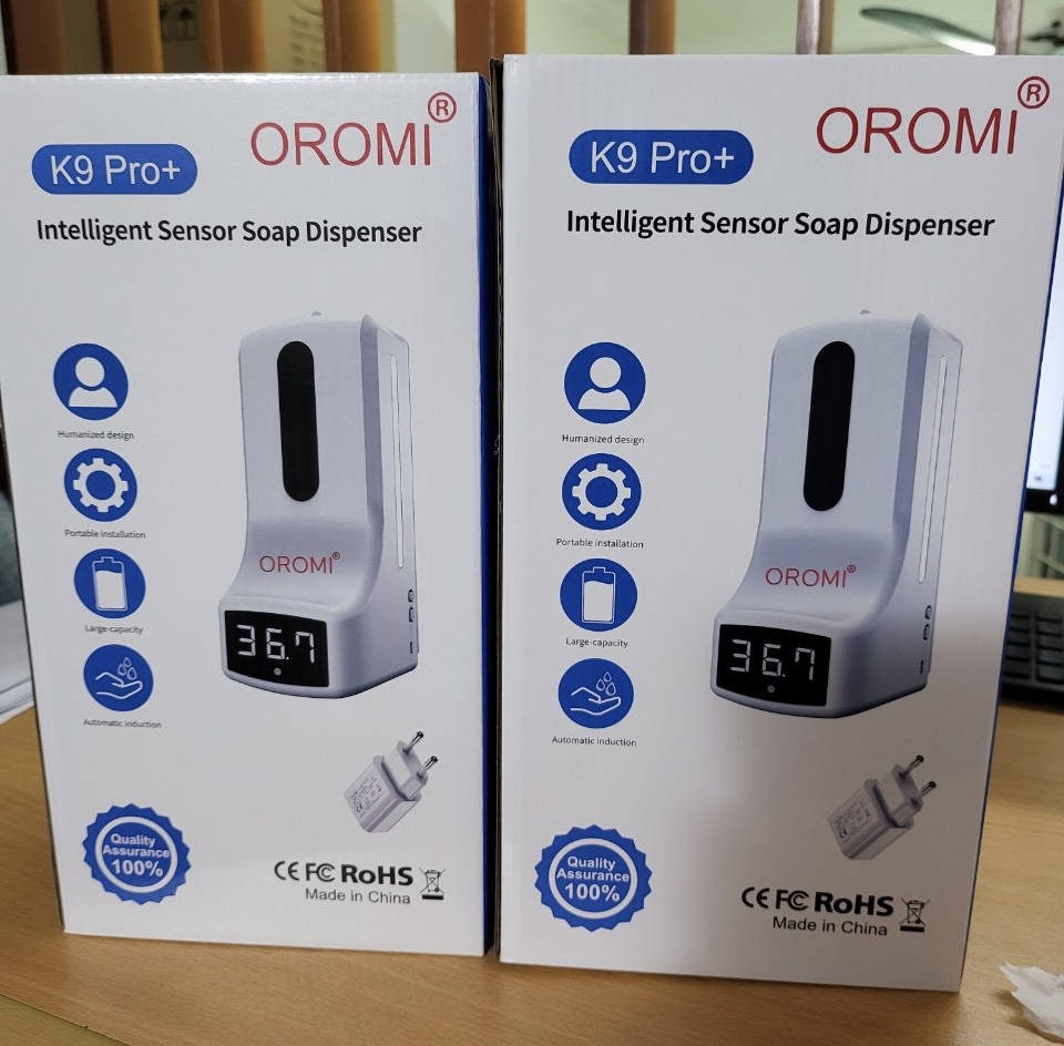 Máy đo thân nhiệt K9 Pro+ kèm rửa tay tự động thương hiệu Oromi (kèm củ điện)