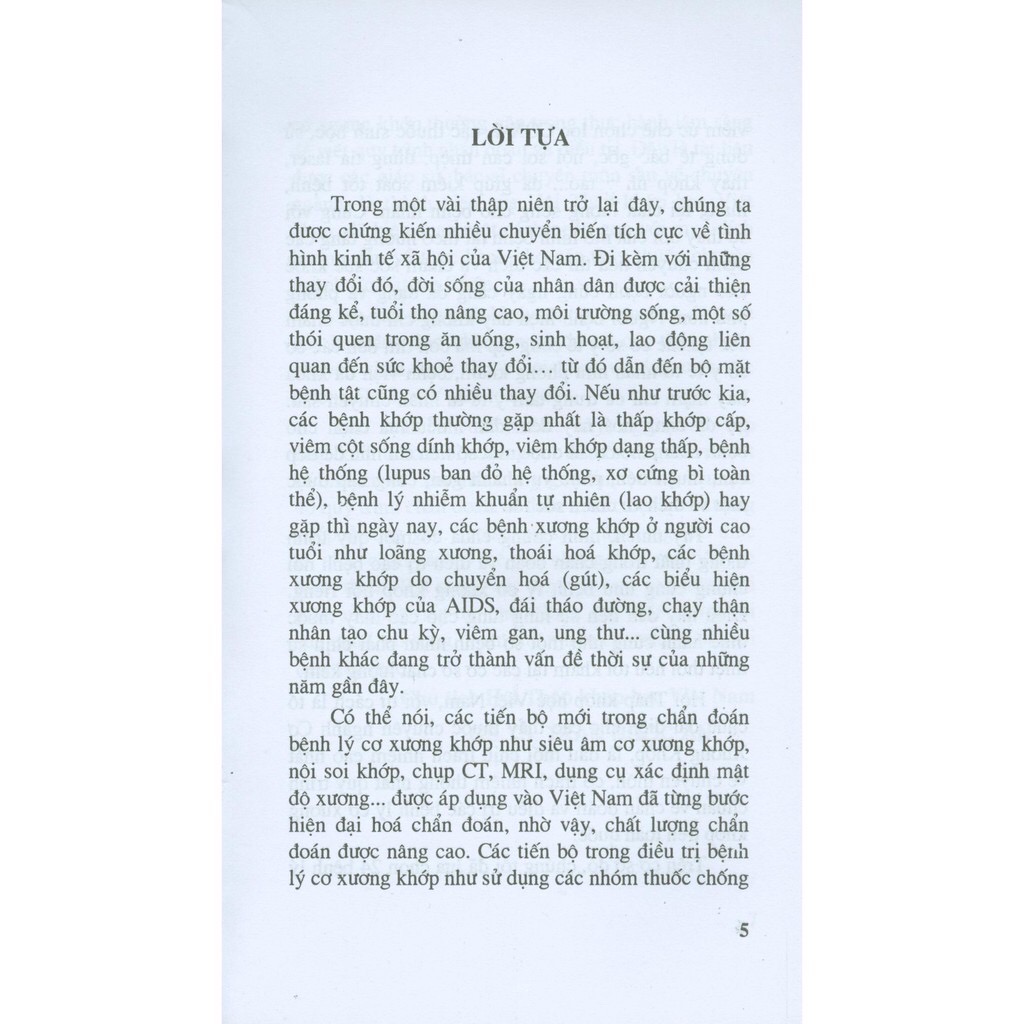 "Trong một vài thập niên trở lại đây, chúng ta được chứng kiến nhiều chuyển biến tích cực về tình hình kinh tế xã hội của Việt Nam. Đi kèm với những thay đổi đó, đời sống của nhân dân được cải thiện đáng kể, tuổi thọ nâng cao, môi trường sống, một số thói quen trong ăn uống, sinh hoạt, lao động liên quan đến sức khỏe thay đổi... từ đó dẫn đến bộ mặt bệnh tật cũng có nhiều thay đổi. Nếu như trước kia, các bệnh khớp thường gặp nhất là thấp khớp cấp, viêm cột sống dính khớp, viêm khớp dạng thấp, bệnh hệ thống (lupus ban đỏ hệ thống, xơ cứng bì toàn thể), bệnh lý nhiễm khuẩn tự nhiên (lao khớp) hay gặp thì ngày nay, các bệnh xương khớp ở người cao tuổi như loãng xương, thoái hoá khớp, các bệnh xương khớp do chuyển hoá (gút), các biểu hiện xương khớp của AIDS, đái tháo đường, chạy thận nhân tạo chu kỳ, viêm gan, ung thư... cùng nhiều bệnh khác đang trở thành vấn đề thời sự của những năm gần đây.