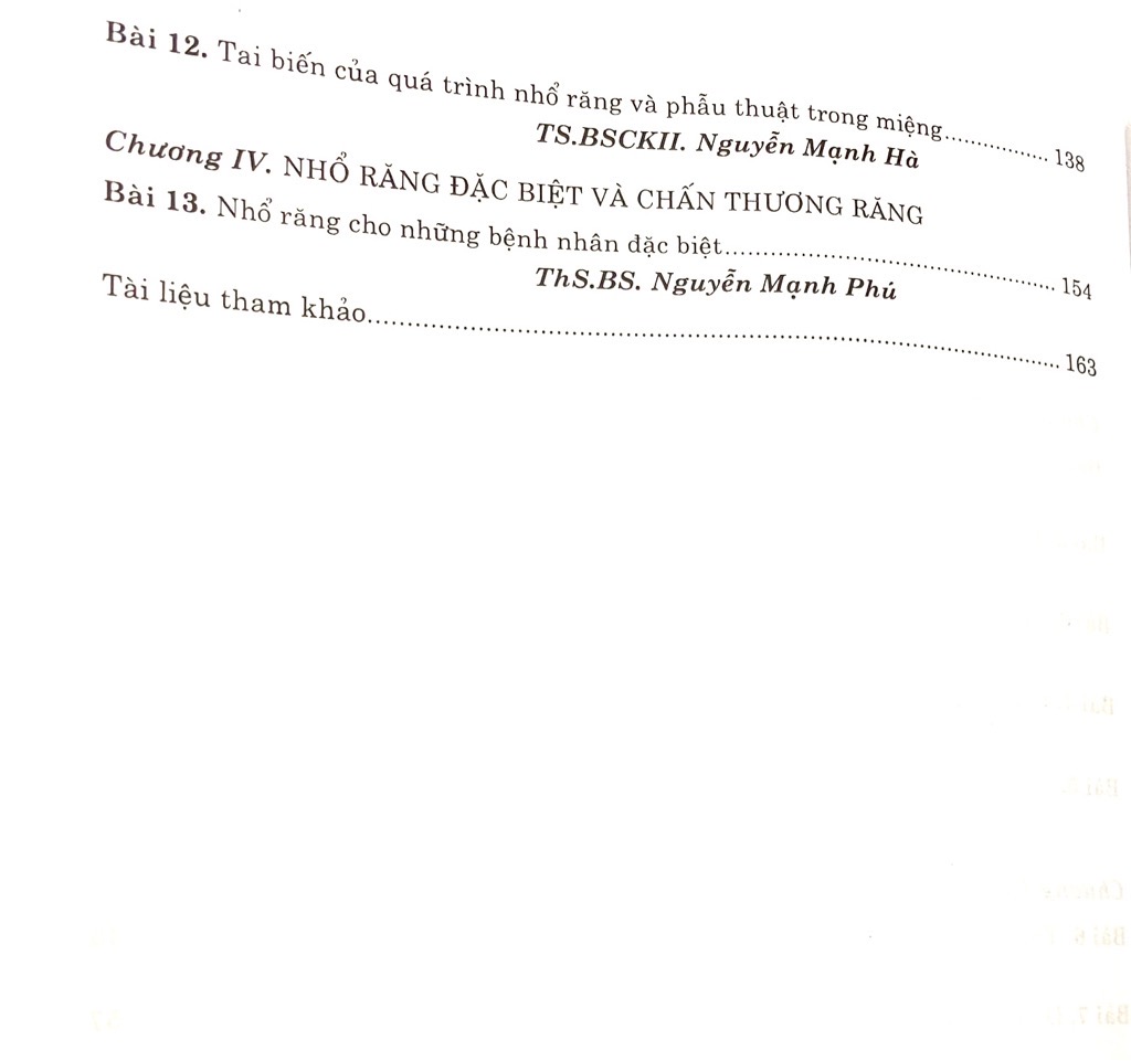 - Chương IV: Nhổ răng đặc biệt và chấn thương răng (tiếp theo).