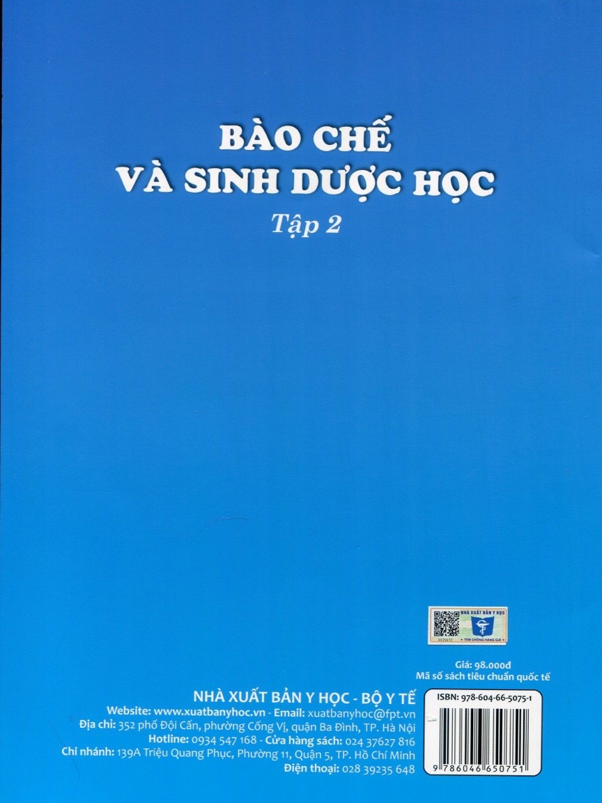"Bào chế và Sinh dược học". Sách gồm 2 tập, có nội dung kiến thức được thiết kế đáp ứng đúng Chương trình chi tiết môn học "Bào chế và Sinh dược học" đã được Nhà trường phê duyệt với thời lượng dạy - học là 6 tín chỉ.