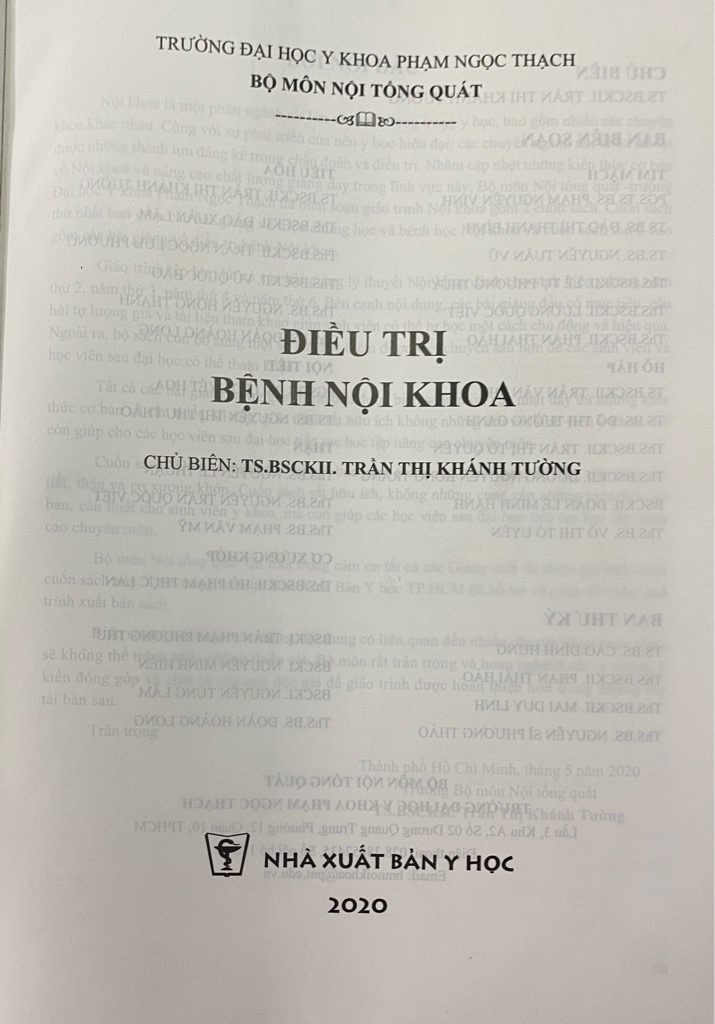 Tác giả: Trần Thị Khánh Tường Tập thể cán bộ Bộ môn Nội tổng quát - Trường đại học y khoa Phạm Ngọc Thạch