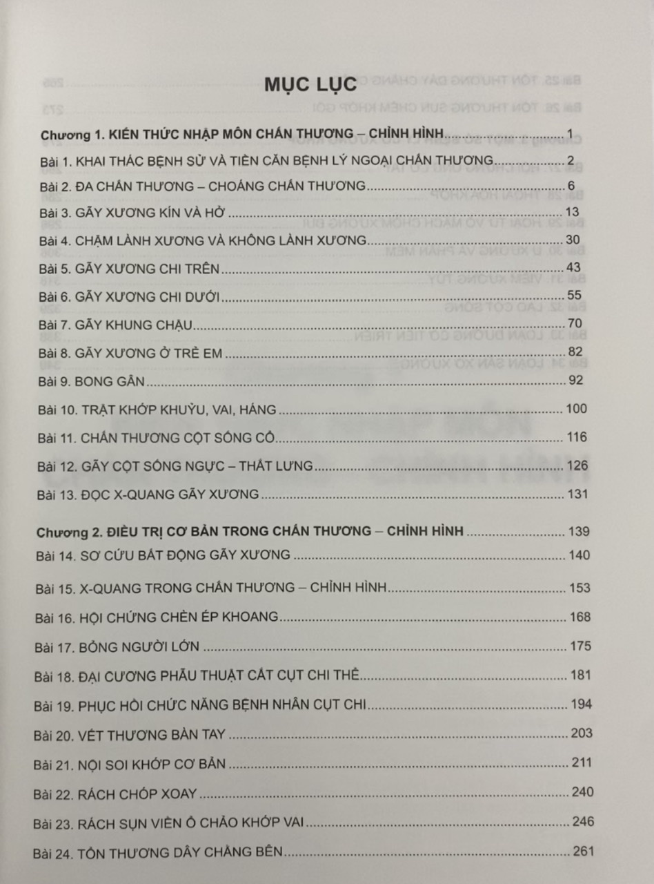 Sách được cấu trúc gồm 03 chương, với 34 bài giảng nhằm cung cấp cho sinh viên và học viên kiến thức cơ bản về chấn thương – chỉnh hình: