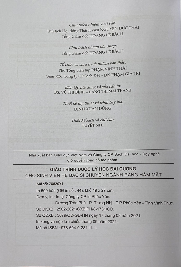 Sách - Giáo trình dược lý học đại cương cho bac sĩ Răng hàm mặt (nxbgd)