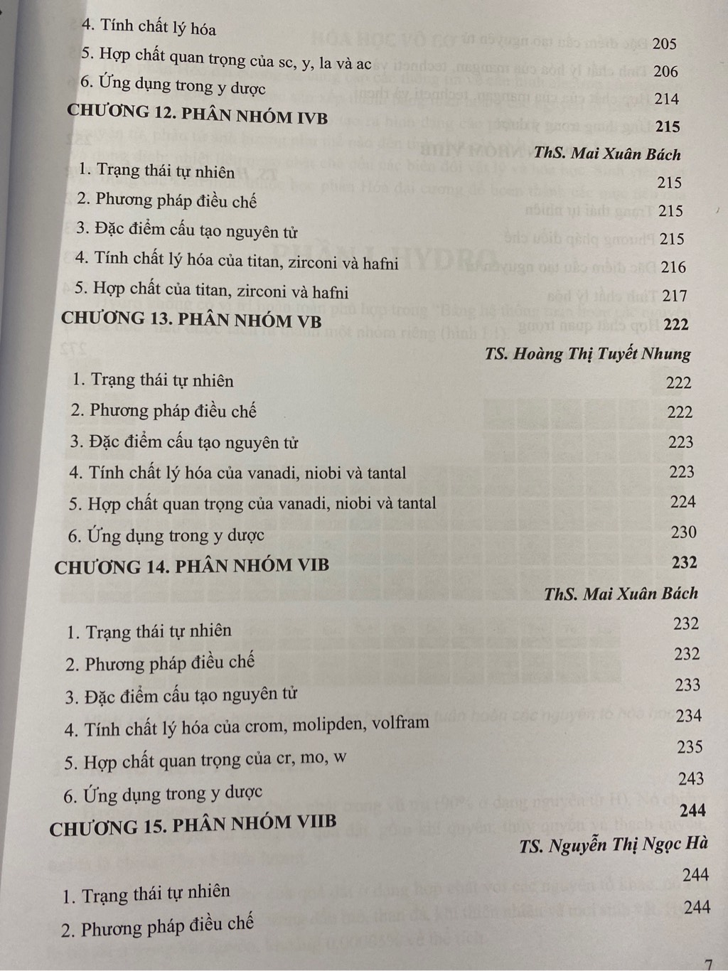 Sách gồm 3 phần: Hydro, Nguyên tố phân nhóm chính (nhóm A), nguyên tố kim loại chuyển tiếp (nhóm B).