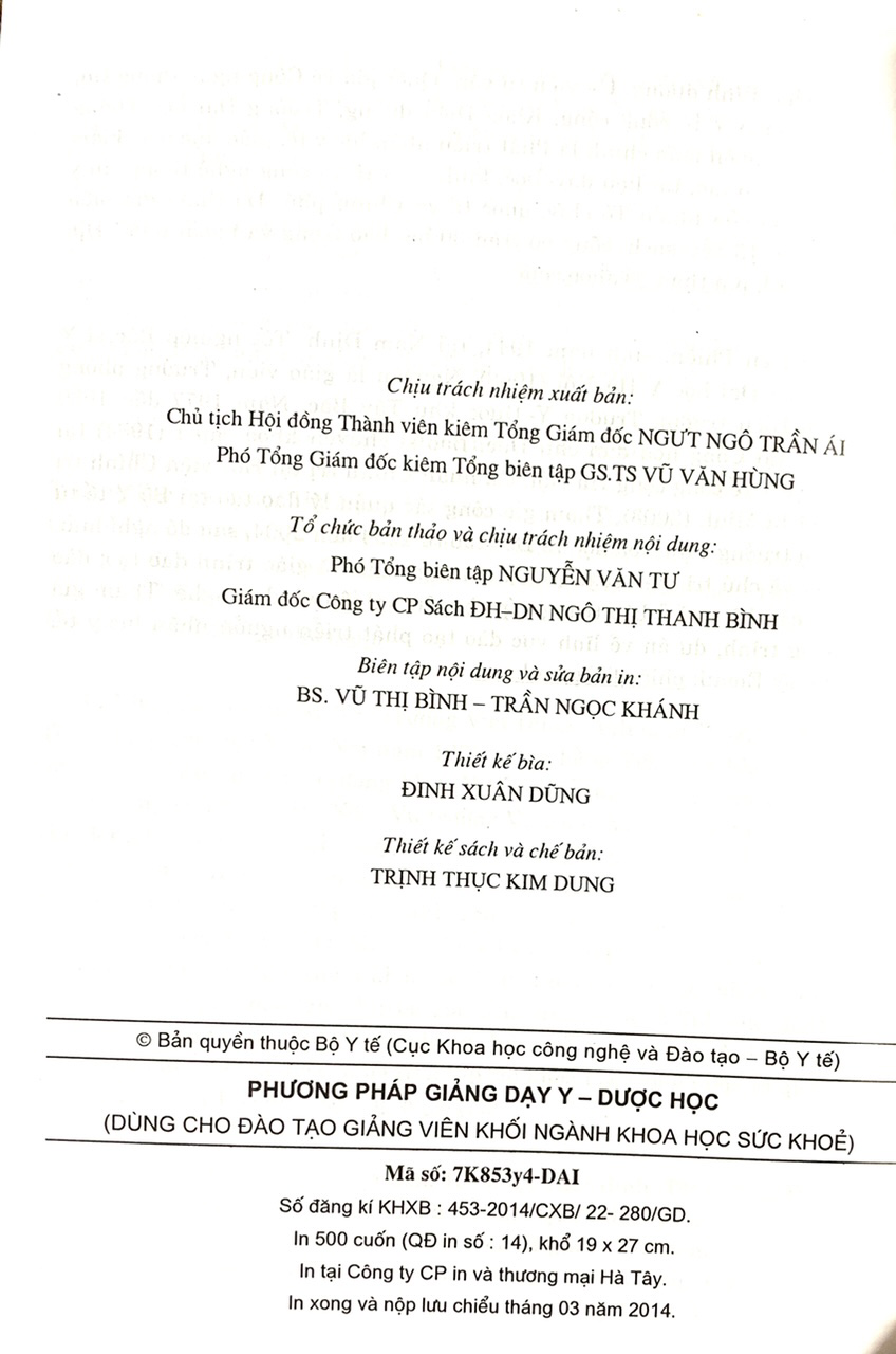 Việc tiến hành bài giảng tuỳ thuộc vào mỗi thầy giáo, cô giáo. Các nội dung trong sách được coi như là ví dụ cho các giảng viên mới chuẩn bị bài giảng. Cuốn Phương pháp giảng dạy Y – Dược học được biên soạn bởi các nhà giáo giàu kinh nghiệm và tâm huyết về sư phạm y học của ngành Y tế. Sách được Hội đồng chuyên môn của Bộ Y tế thẩm định và được ban hành phục vụ cho công tác đào tạo các thầy giảng dạy về Sư phạm Y học của ngành Y tế.