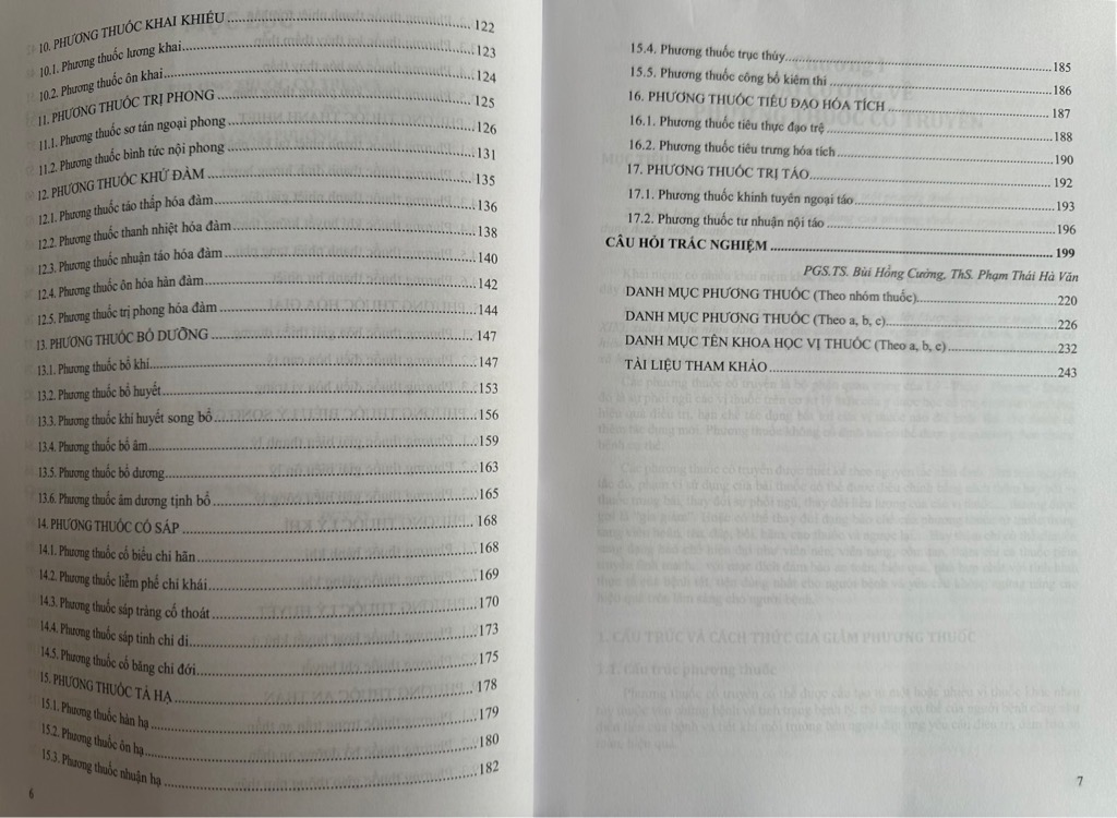 Chương 2: Các nội dung cơ bản liên quan đến phương thuốc cổ truyền thuộc 17 nhóm thuốc, thành phần, công năng, chủ trì, đặc điểm cấu trúc của các phương thuốc cổ truyền thường dùng cũng như cách thức gia giảm và chú ý khi sử dụng
