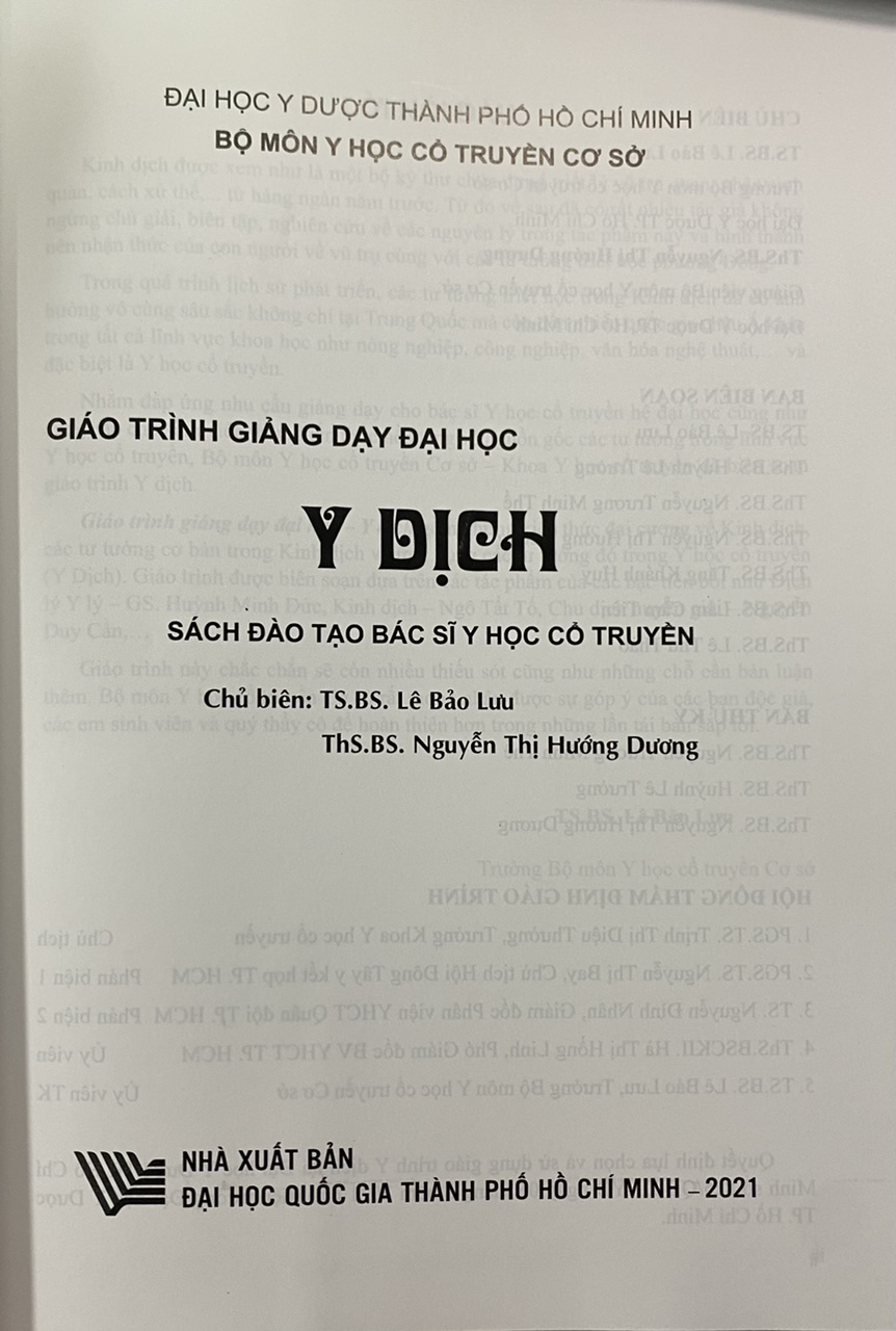 Giáo trình giảng dạy đại học – Y Dịch gồm những kiến thức đại cương về Kinh dịch, các tư tưởng cơ bản trong Kinh dịch và ứng dụng các tư tưởng đó trong Y học cổ truyền (Y dịch).