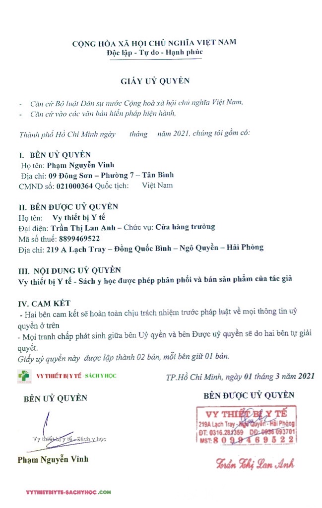 >>> Khi quý khách “ Đặt đơn hàng", "Mua hàng" có nghĩa là quý khách đã đồng ý với các chính sách và đồng ý tiếp nhận các cuộc gọi, tin nhắn tư vấn, thông báo, xác nhận đơn hàng của VLA Medical (Vy thiết bị y tế - Sách Y học)
