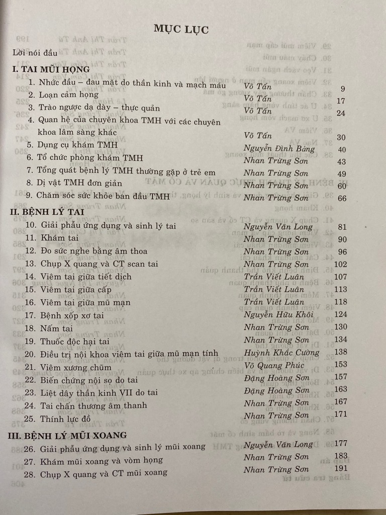 + Chương 1- Tai mũi họng tổng quát bao gồm: nhức đầu – đau mặt do thần kinh và mạch máu, loạn cảm họng, dụng cụ khám tai mũi họng,……