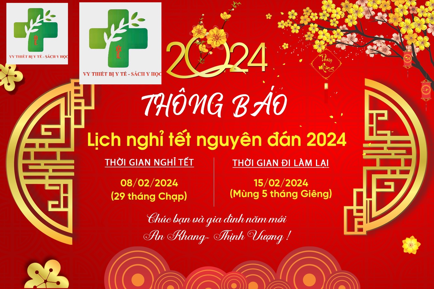 - VY THIẾT BỊ Y TẾ - SACH Y HỌC sẽ chính thức nghỉ Tết Nguyên Đán từ 12h00 - 29 Tết (Tức ngày 08.02.2023) đến hết Mùng 5 Tết (Tức ngày 14.02.2022).