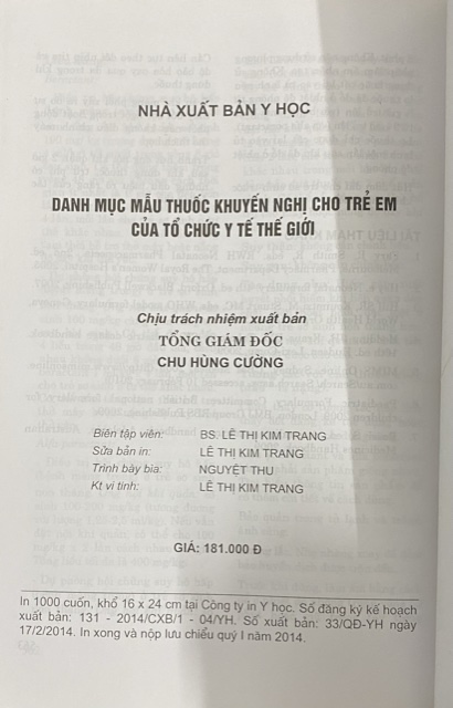 Sách - Danh mục mẫu thuốc kiến nghị cho trẻ em của tổ chức y tế thế giới