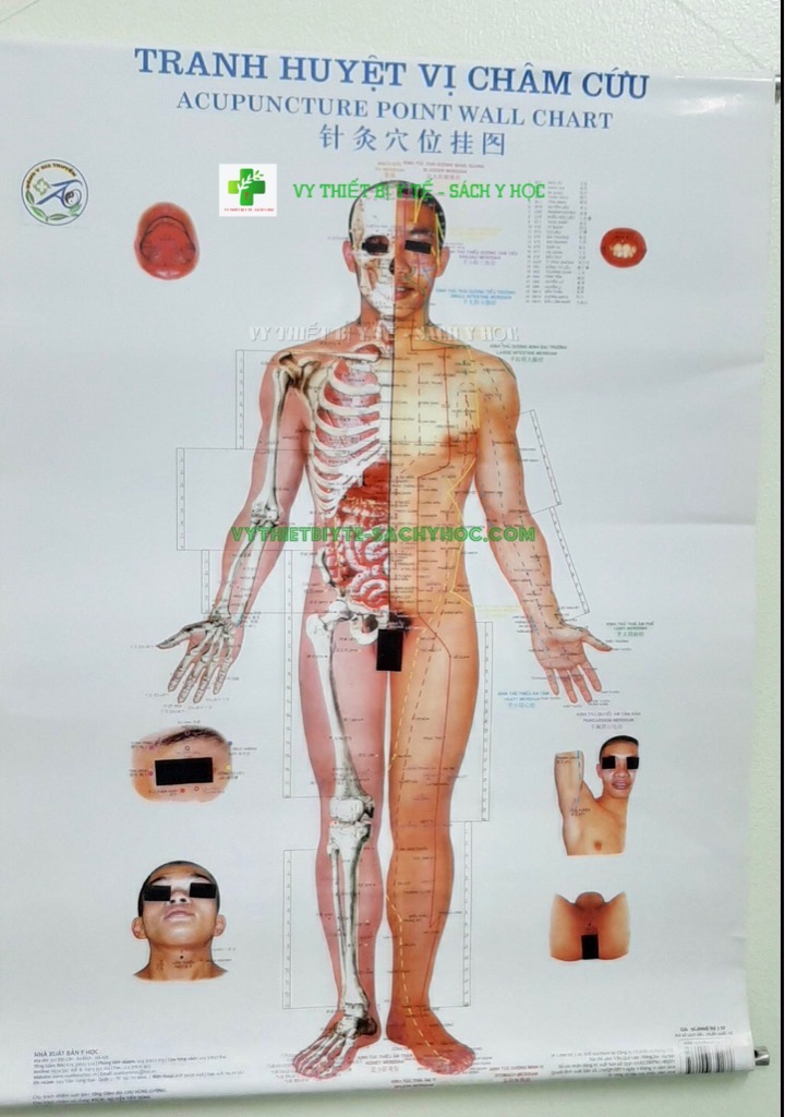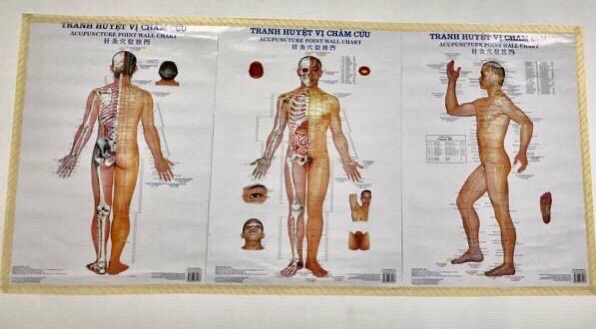 Bộ 3 tờ tranh châm cứu miêu tả đầy đủ các huyệt vị phân bố theo...