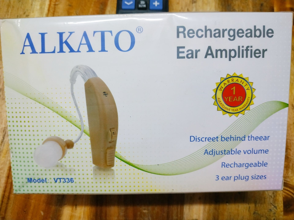 Máy Alkato VT336 có đặc điểm nhỏ để quanh vành tai Alkato VT336 kèm theo bộ đổi điện hết điện mình sạc thay khỏi phải dùng pin nhiều lần mà tốn kém