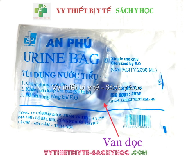 - Bộ sản phẩm túi đựng nước tiểu gồm: ống dẫn, van xả, túi.